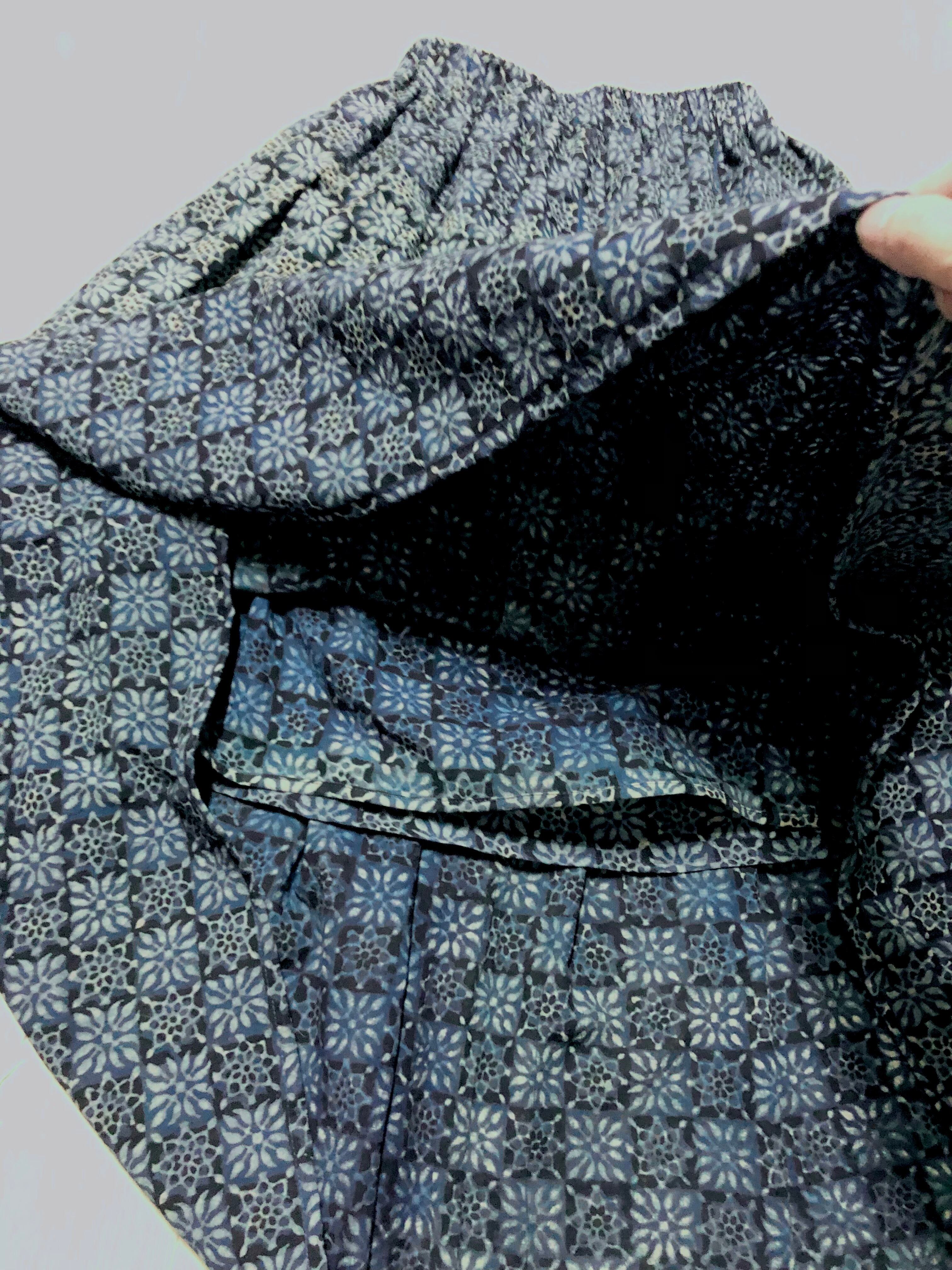 生地は、インド綿(伝統息づくインドの昔ながらの木版藍染めアジュラックデザインの伝統模様布)