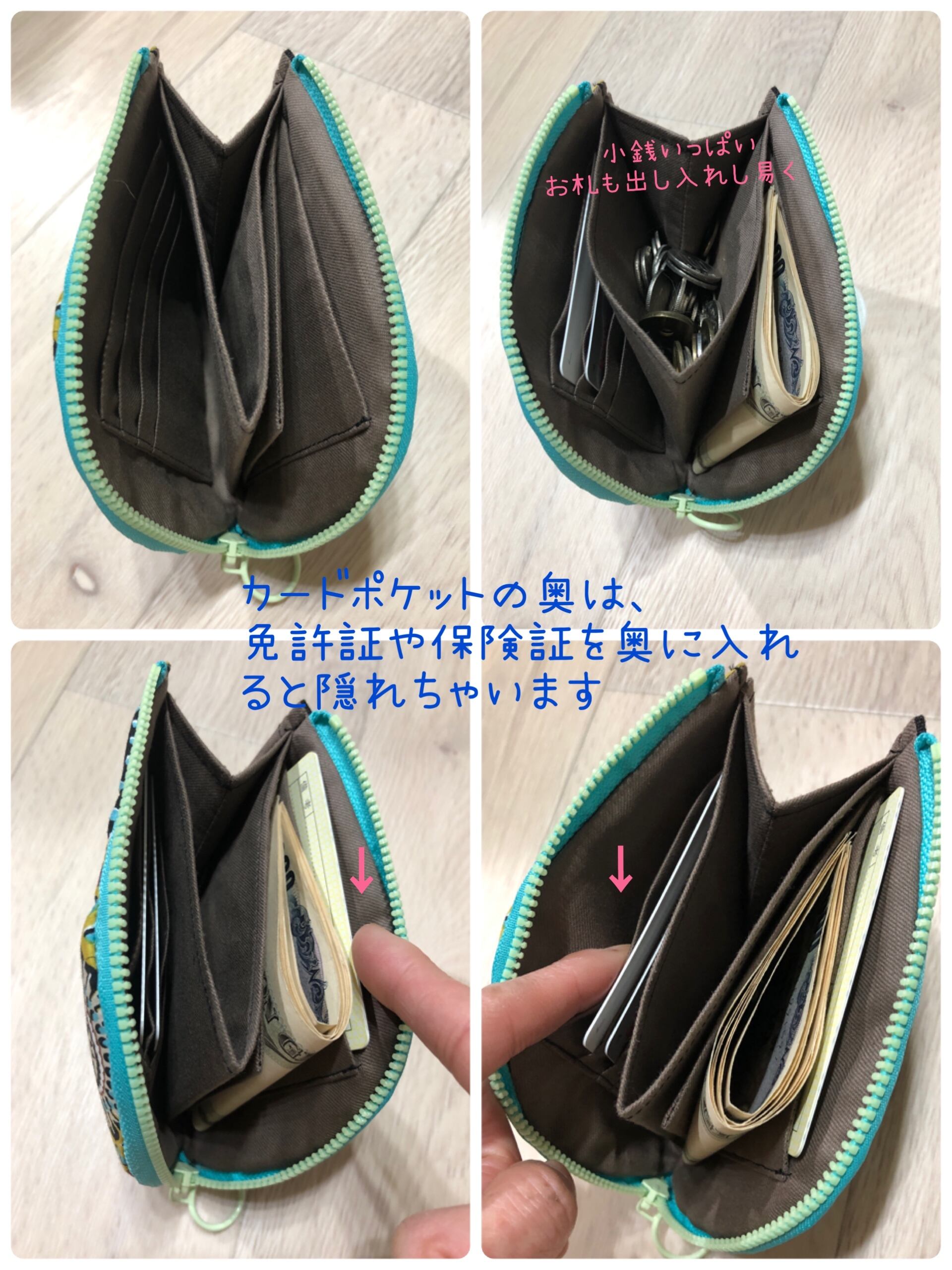 深いポケットには、免許証・保険証・レシート