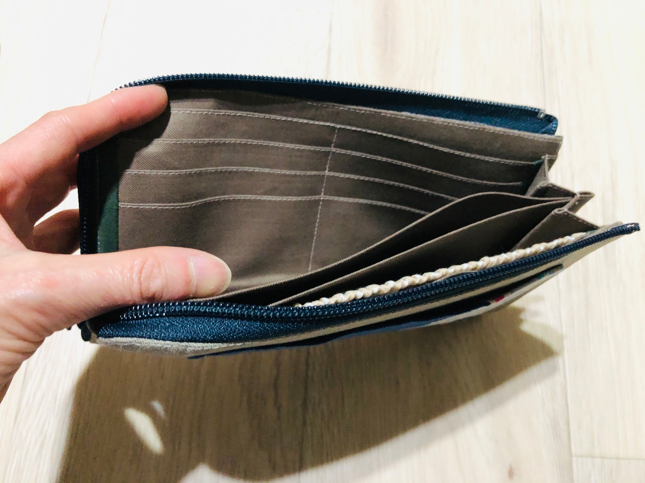 カードポケット8枚・その奥に大きなポケット左右で2箇所・ゴムポケット
