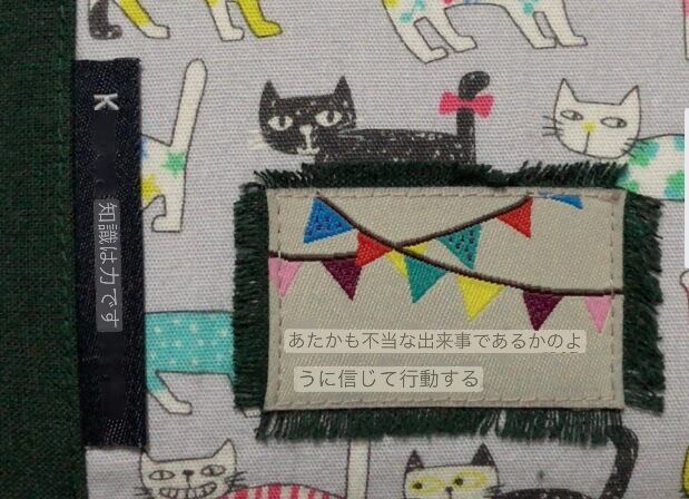 猫ちゃんの生地の横は、黒っぽく見えますが、実際には深緑です。PC環境によって写真の色が違って見えるかもしれません。ご了承下さいませ。